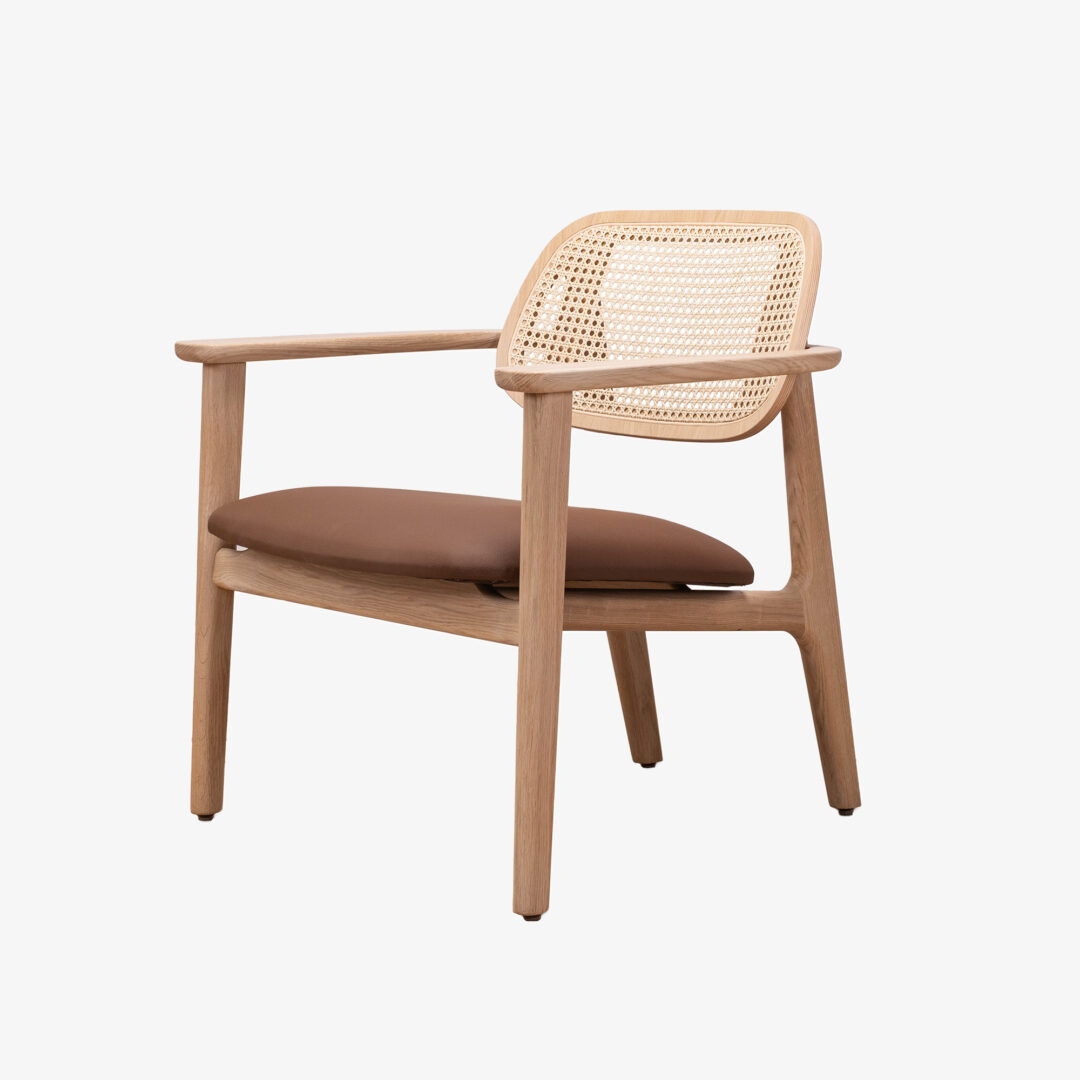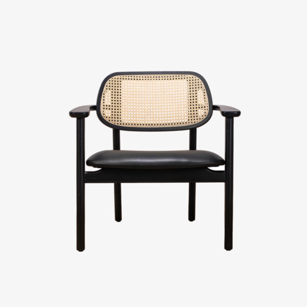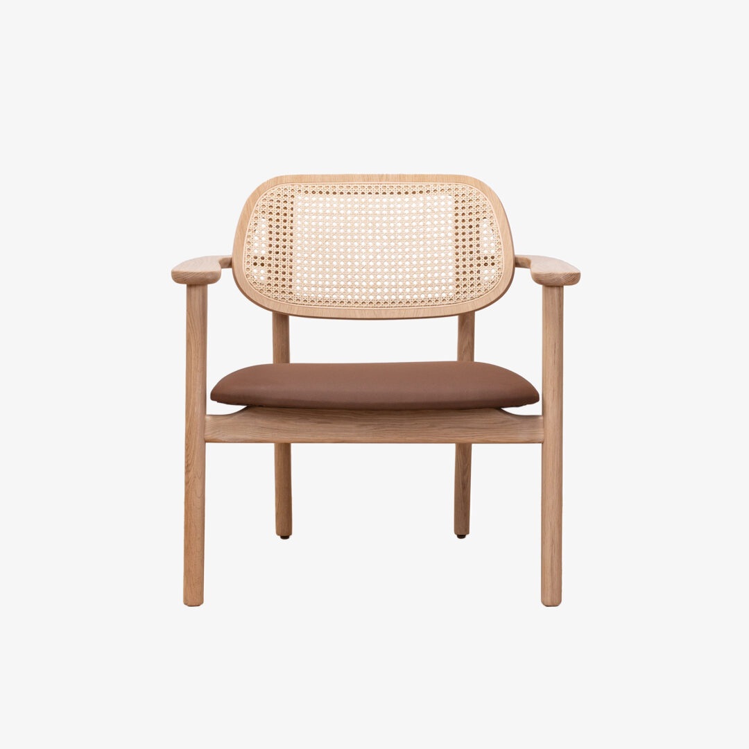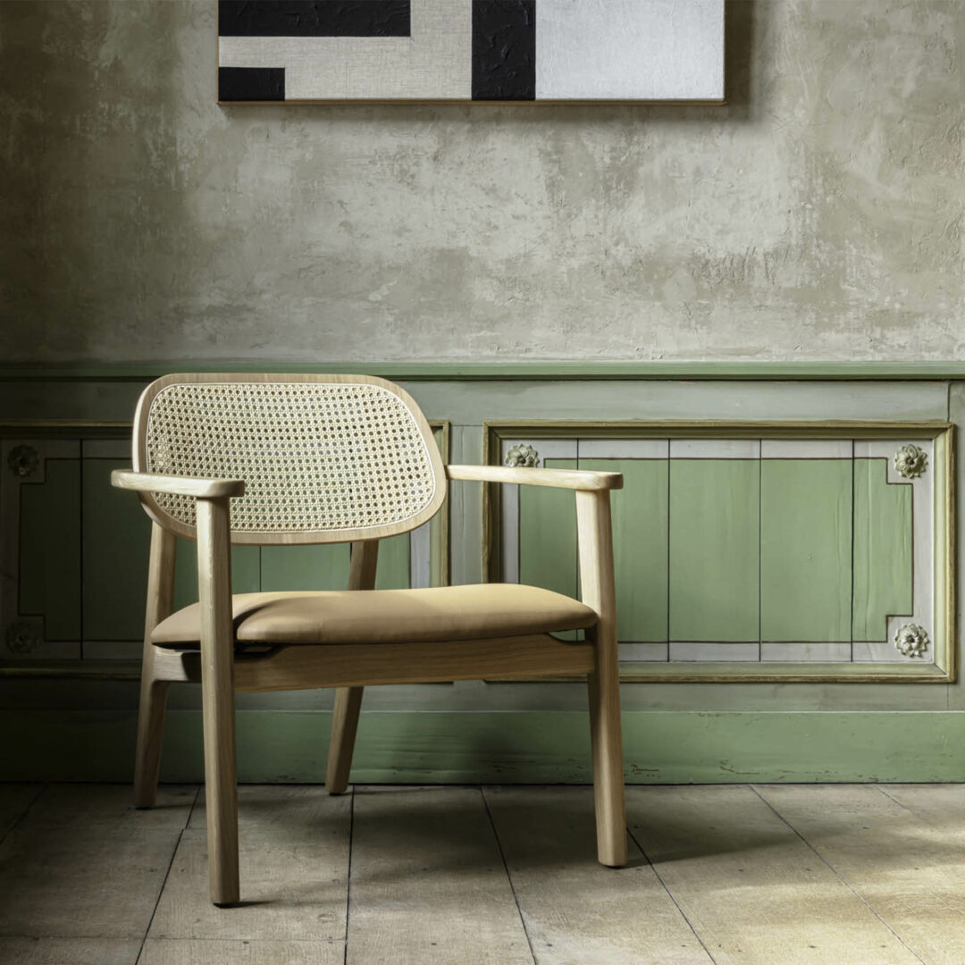 De Titus fauteuil heeft een comfortabele zit en een rug van gevlochten rotan.