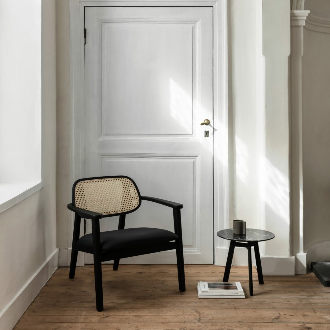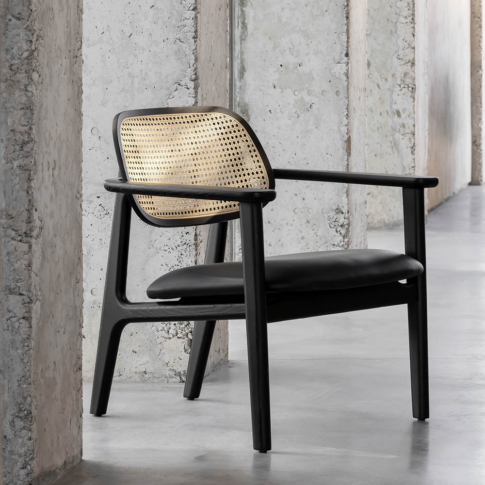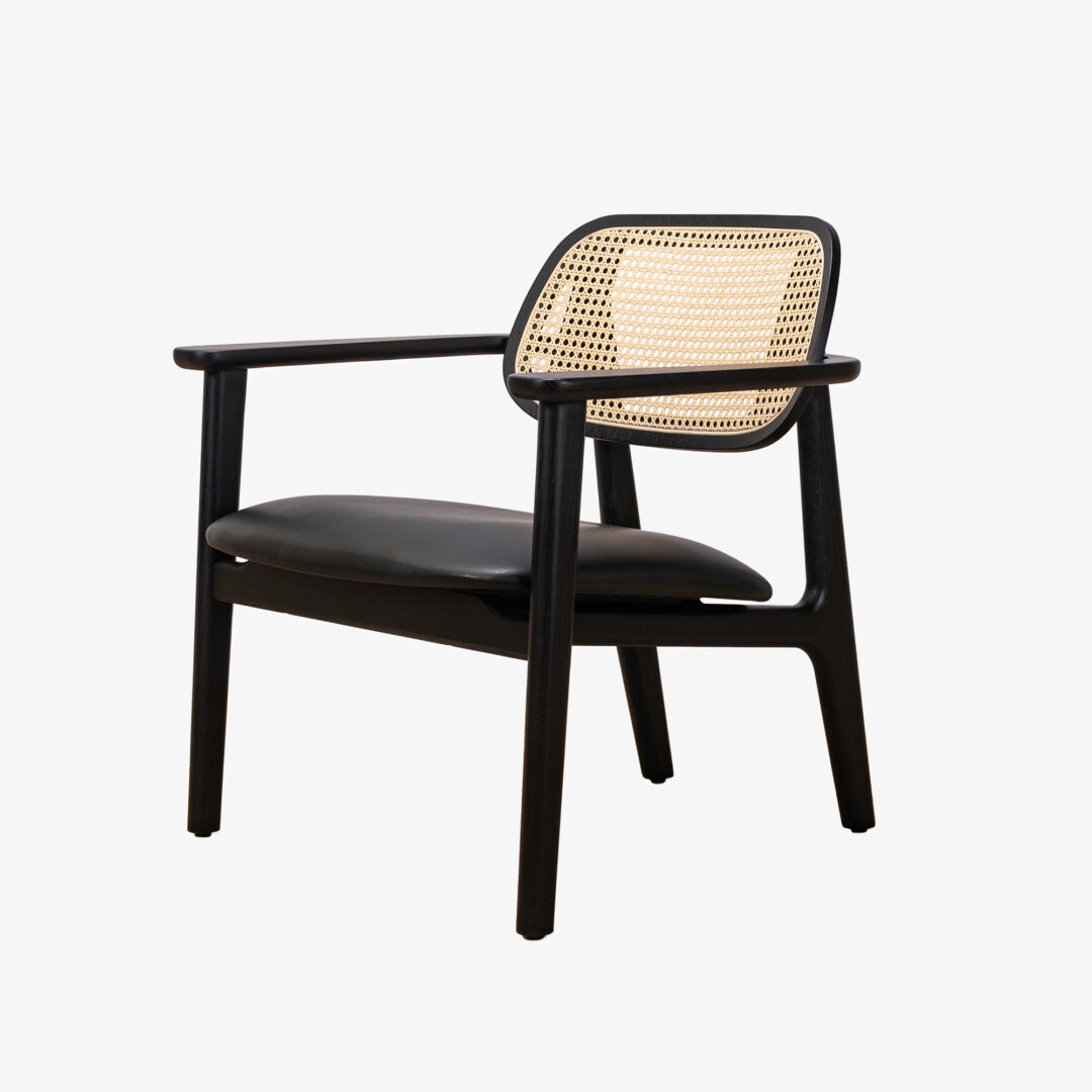 De Titus fauteuil heeft een comfortabele zit en een rug van gevlochten rotan.