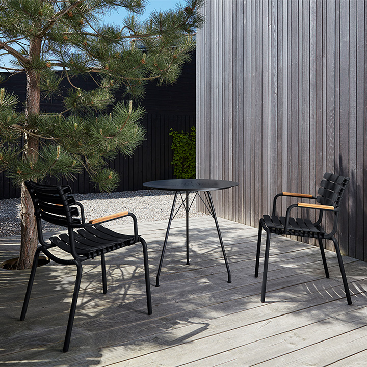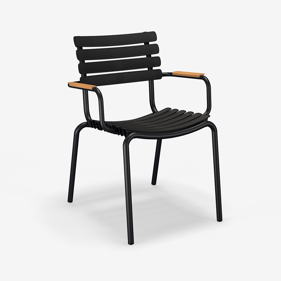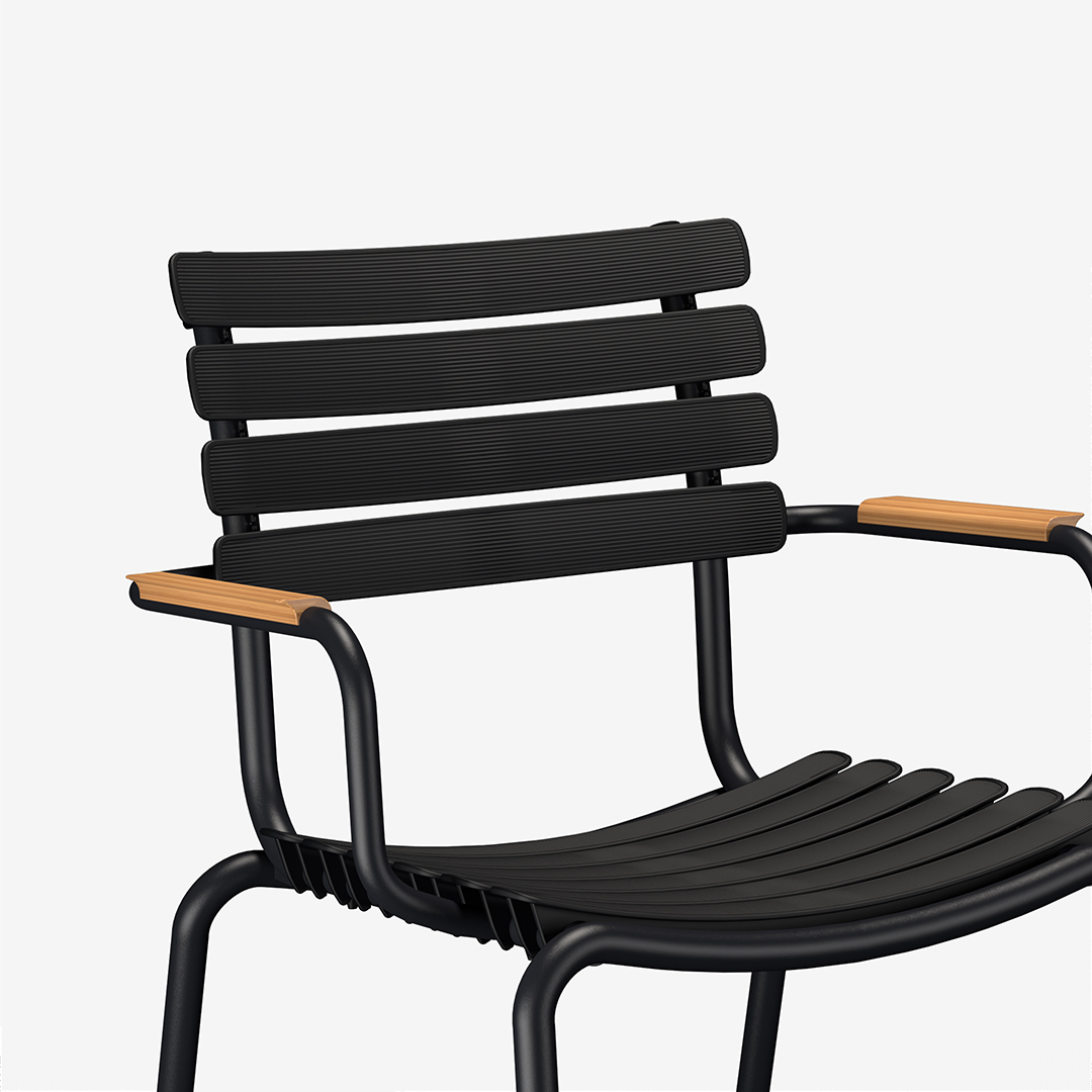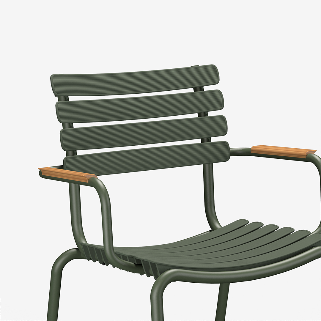 De ReClips tuinstoel, duurzaam design met een ontspannen karakter. Een stijlvolle mix van comfort, functionaliteit en duurzaamheid. Het slanke aluminium frame is lichtgewicht en onderhoudsvrij, terwijl de brede lamellen (gemaakt van gerecycled kunststof) zorgen voor een comfortabele zit zonder kussens.